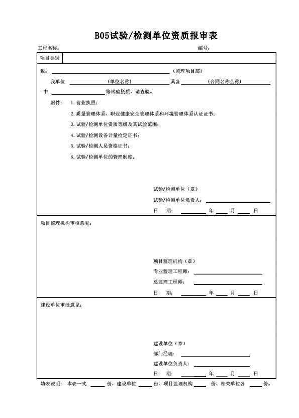 B05试验/检测单位资质报审表