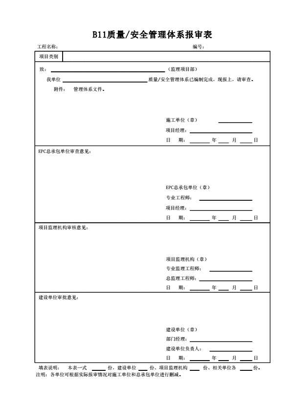 B11质量/安全管理体系报审表