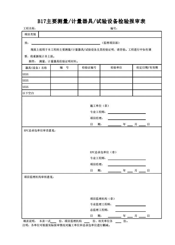 B17主要测量/计量器具/试验设备检验报审表