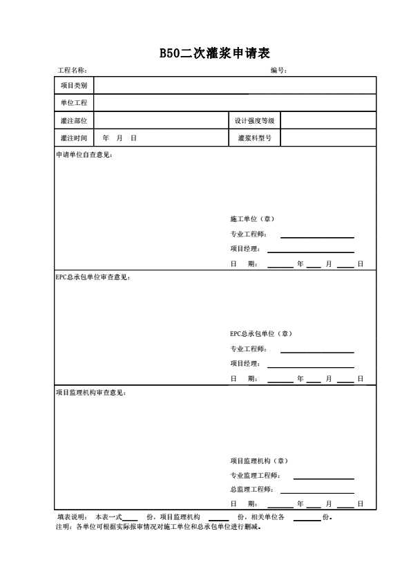表格名称:B50二次灌浆申请表