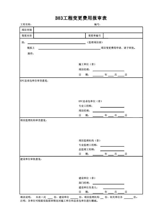 B83工程变更费用报审表