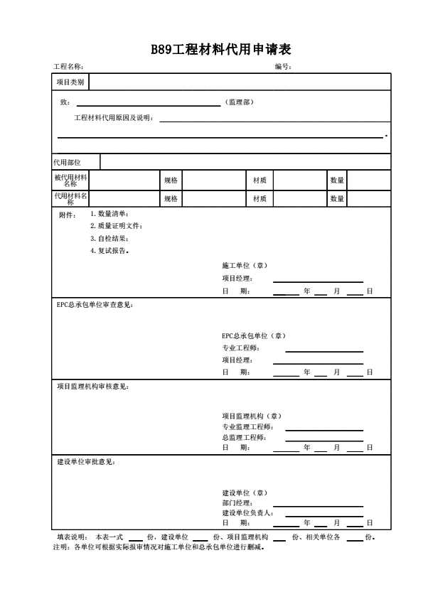 B89工程材料代用申请表