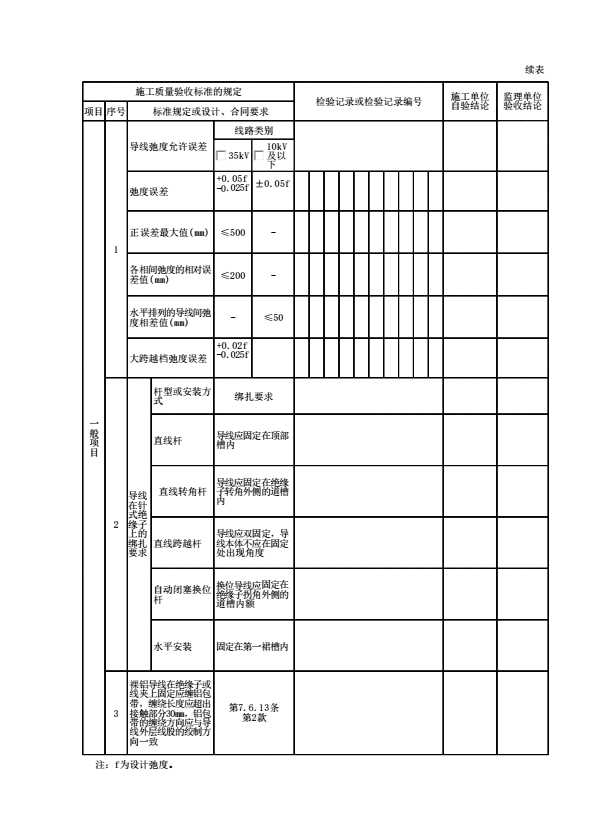 表格名称:09020305 导线及地线架设检验批质量验收记录