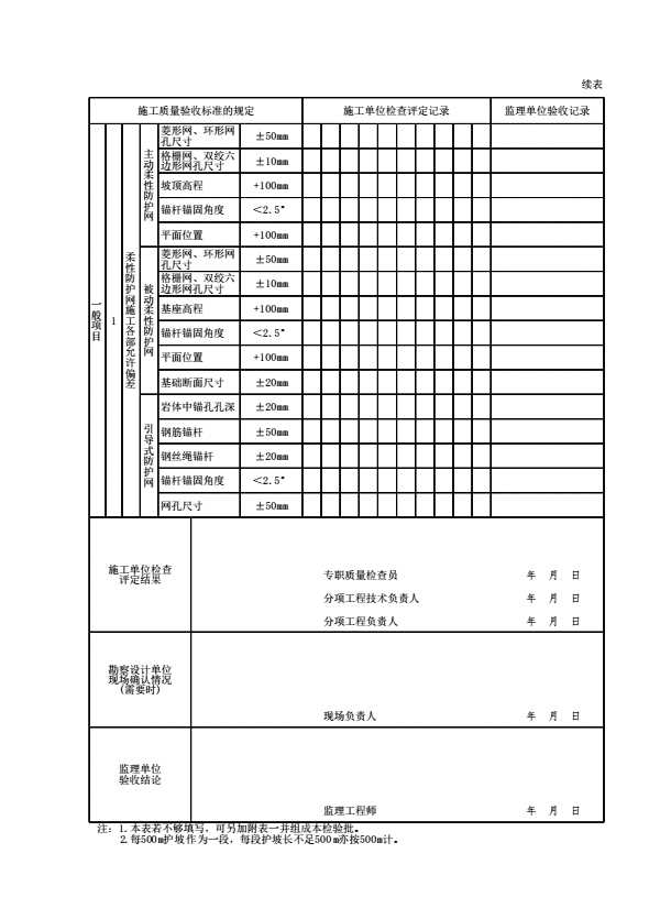 表格名称:02012201 主动防护网防护检验批质量验收记录