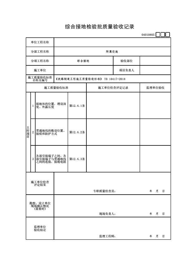 表格名称:04010805 综合接地检验批质量验收记录