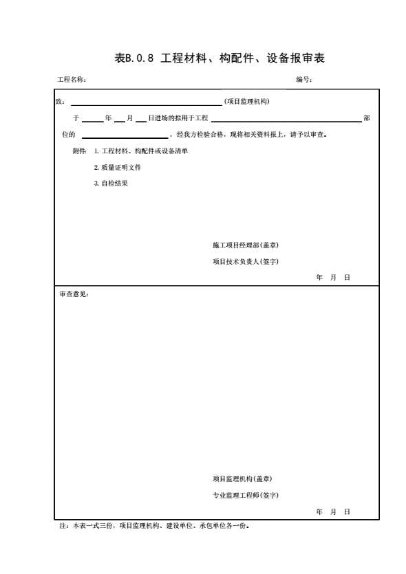 表格名称:表B.0.8 工程材料、构配件、设备报审表