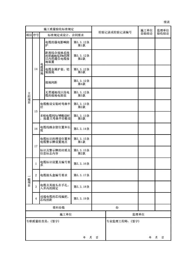 表格名称:G07010102 电缆敷设、防护、接续及引入检验批质量验收记录表