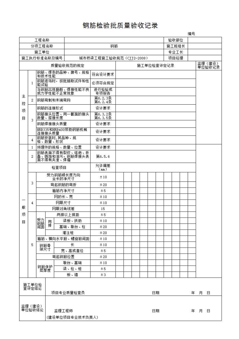 城市桥梁工程施工质量验收表格(CJJ2-2008)
