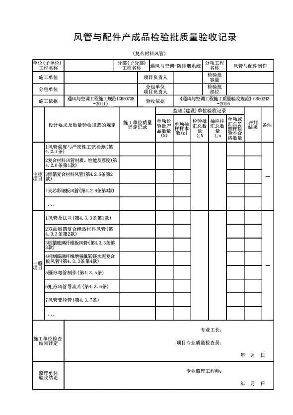 检查方法:按风管系统的类别和材质分别进行,查阅产品合格证和测试报告,或实测旁站。