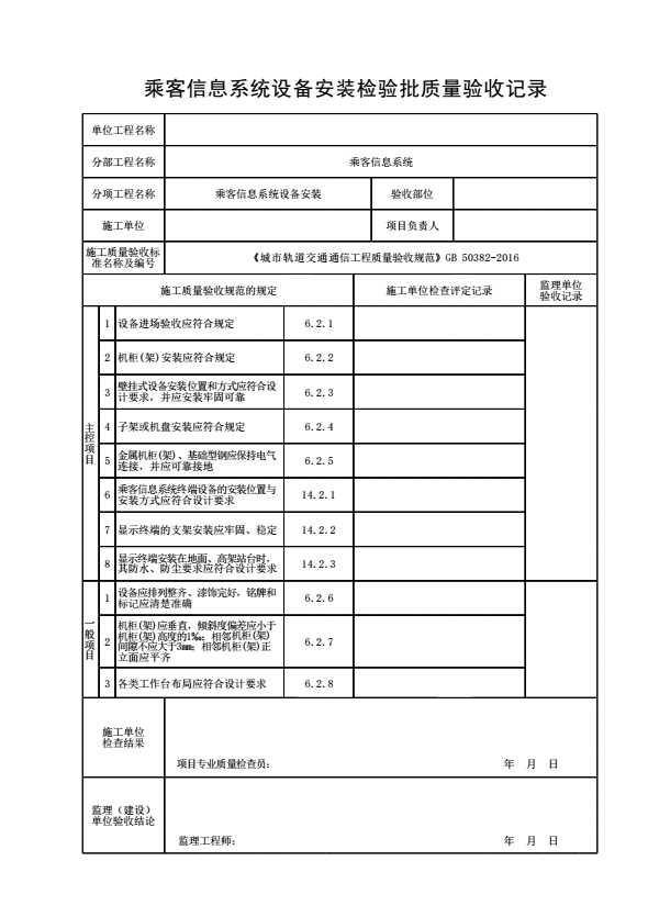 表格名称:乘客信息系统设备安装检验批质量验收记录