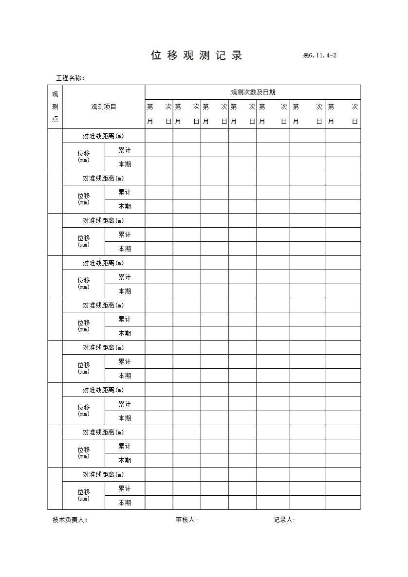 表格名称:表G.11.4-2 位移观测记录