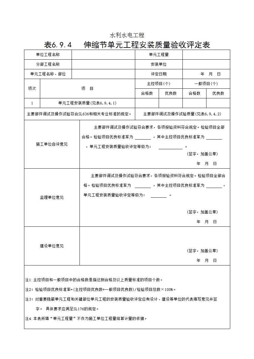 表格名称:表6.9.4 伸缩节单元工程安装质量验收评定表