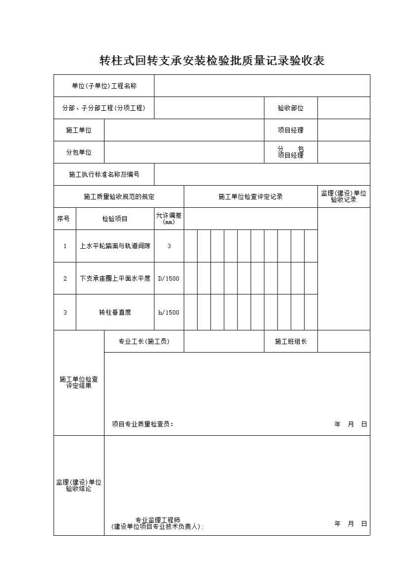 表格名称:转柱式回转支承安装检验批质量记录验收表