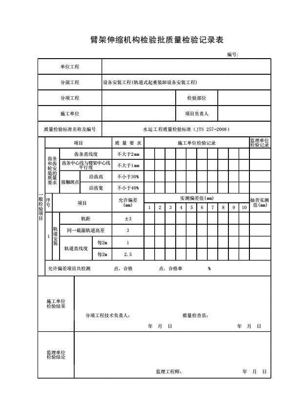 表格名称:臂架伸缩机构检验批质量检验记录表