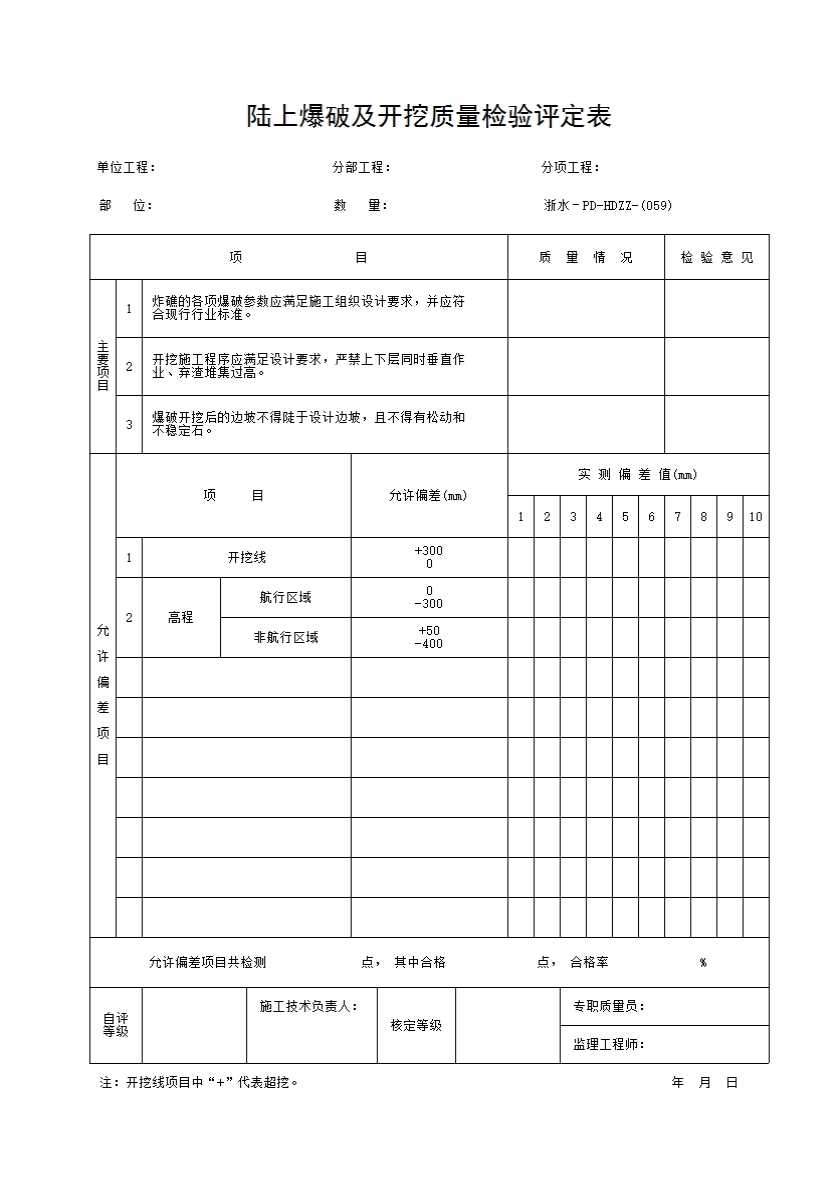 表格名称:059 陆上爆破及开挖质量检验评定表