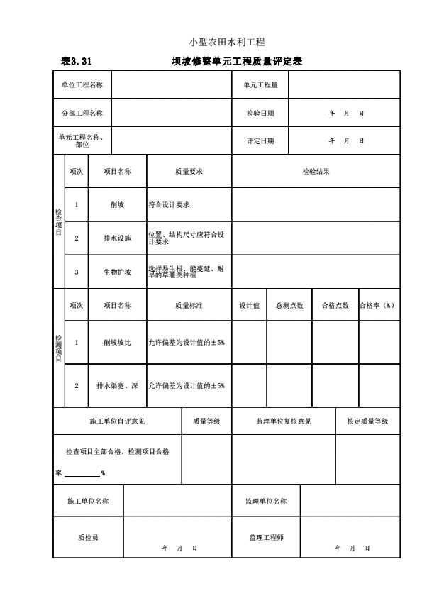 表格名称:表3.31 坝坡修整单元工程质量评定表