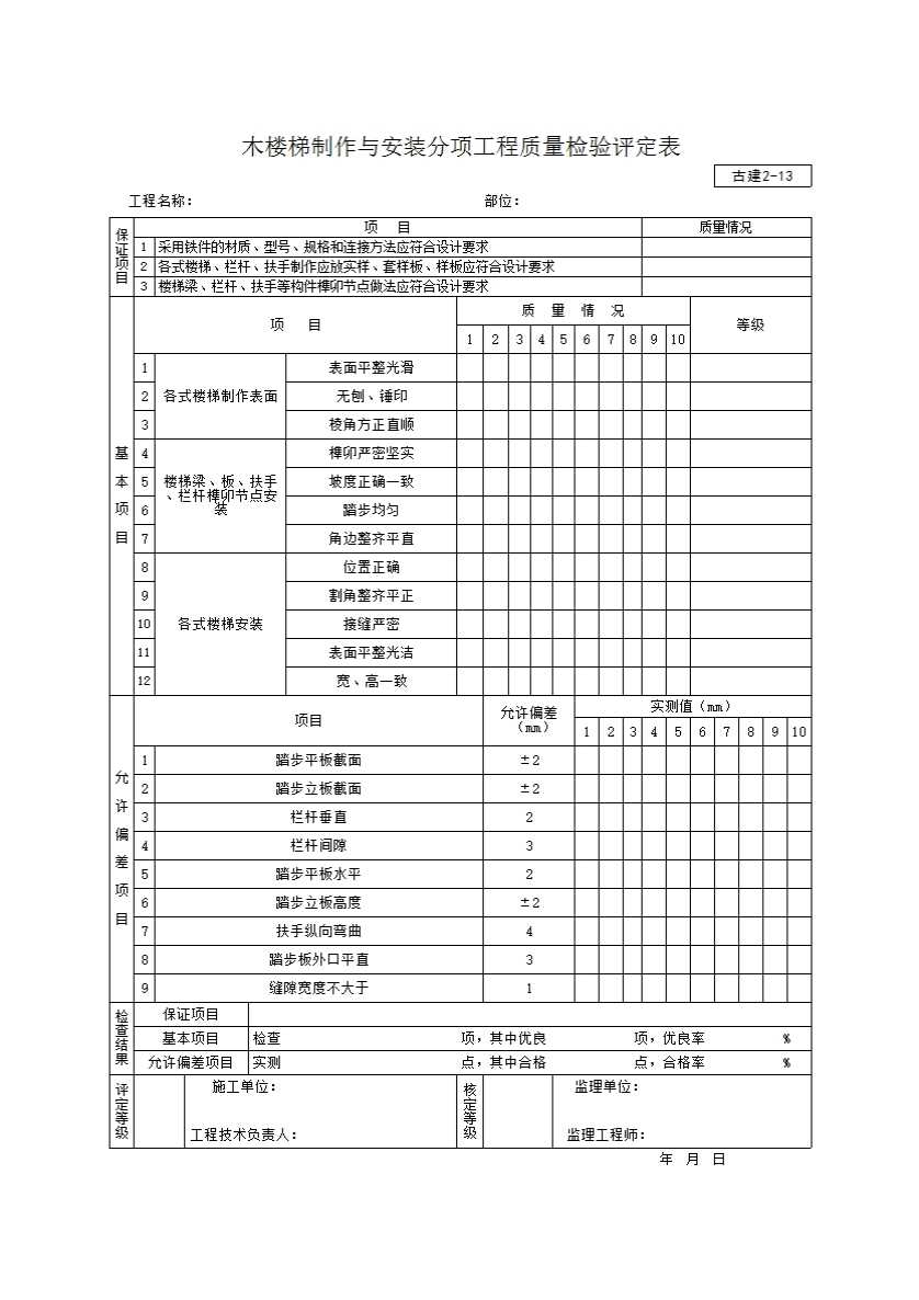 木楼梯制作与安装分项工程质量检验评定表