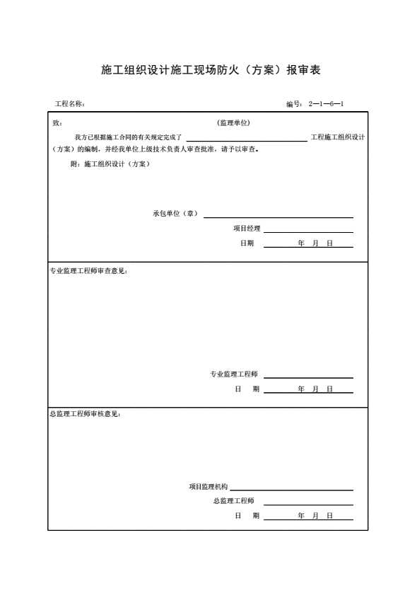 2—1—6—1 施工组织设计施工现场防火(方案)报审表
