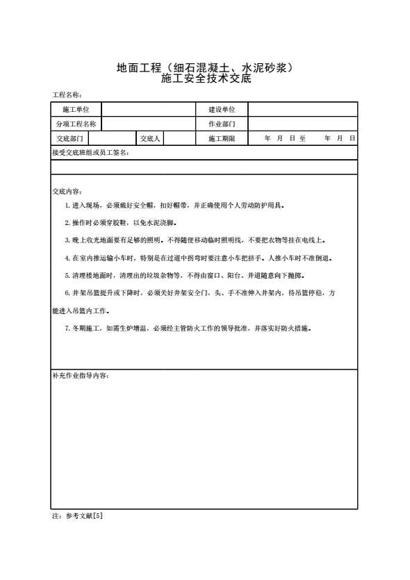 表格名称:地面工程(细石混凝土、水泥砂浆)施工安全技术交底