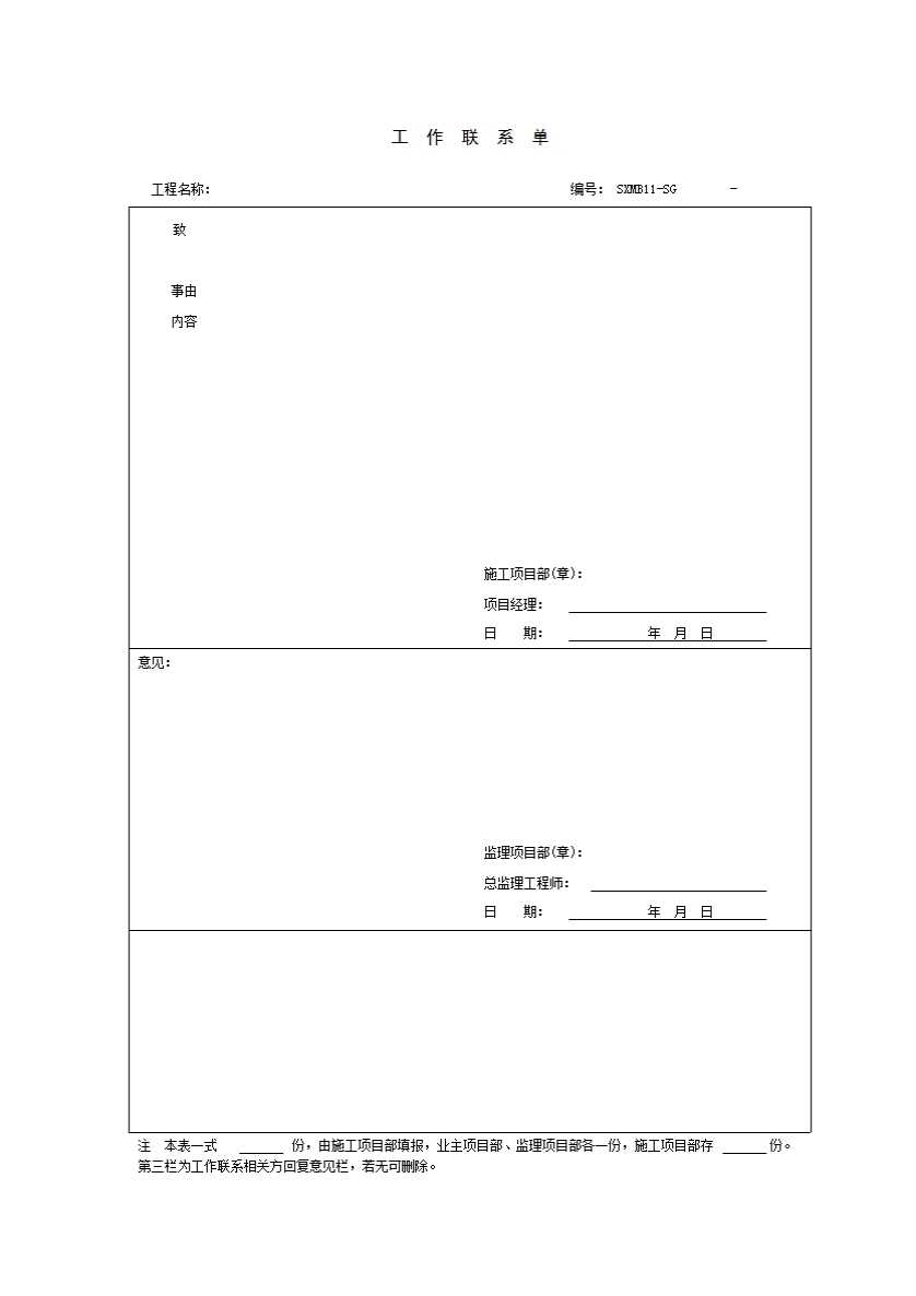 表格名称:SXMB11 工作联系单