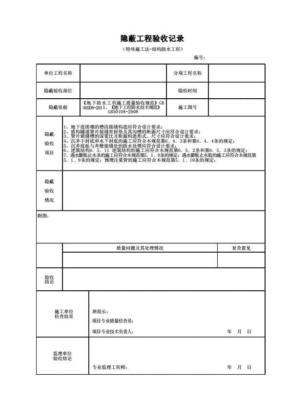 隐蔽工程验收记录(特殊施工法-结构防水工程)
