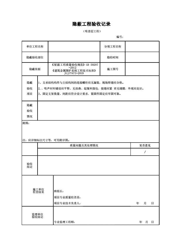 表格名称:隐蔽工程验收记录(吸音层工程)