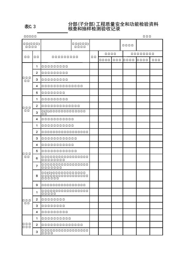 表C.3 分部(子分部)工程质量安全和功能检验资料核查和抽样检测验收记录