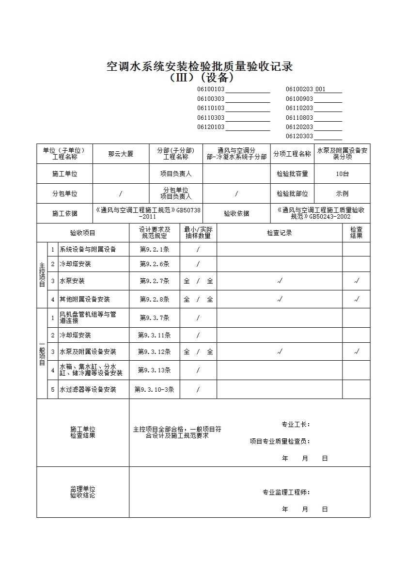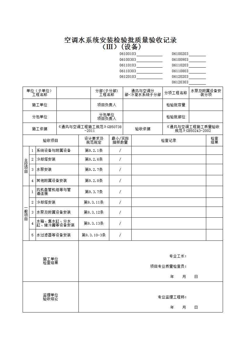 06100203_空调水系统安装检验批质量验收记录(Ⅲ)(设备)