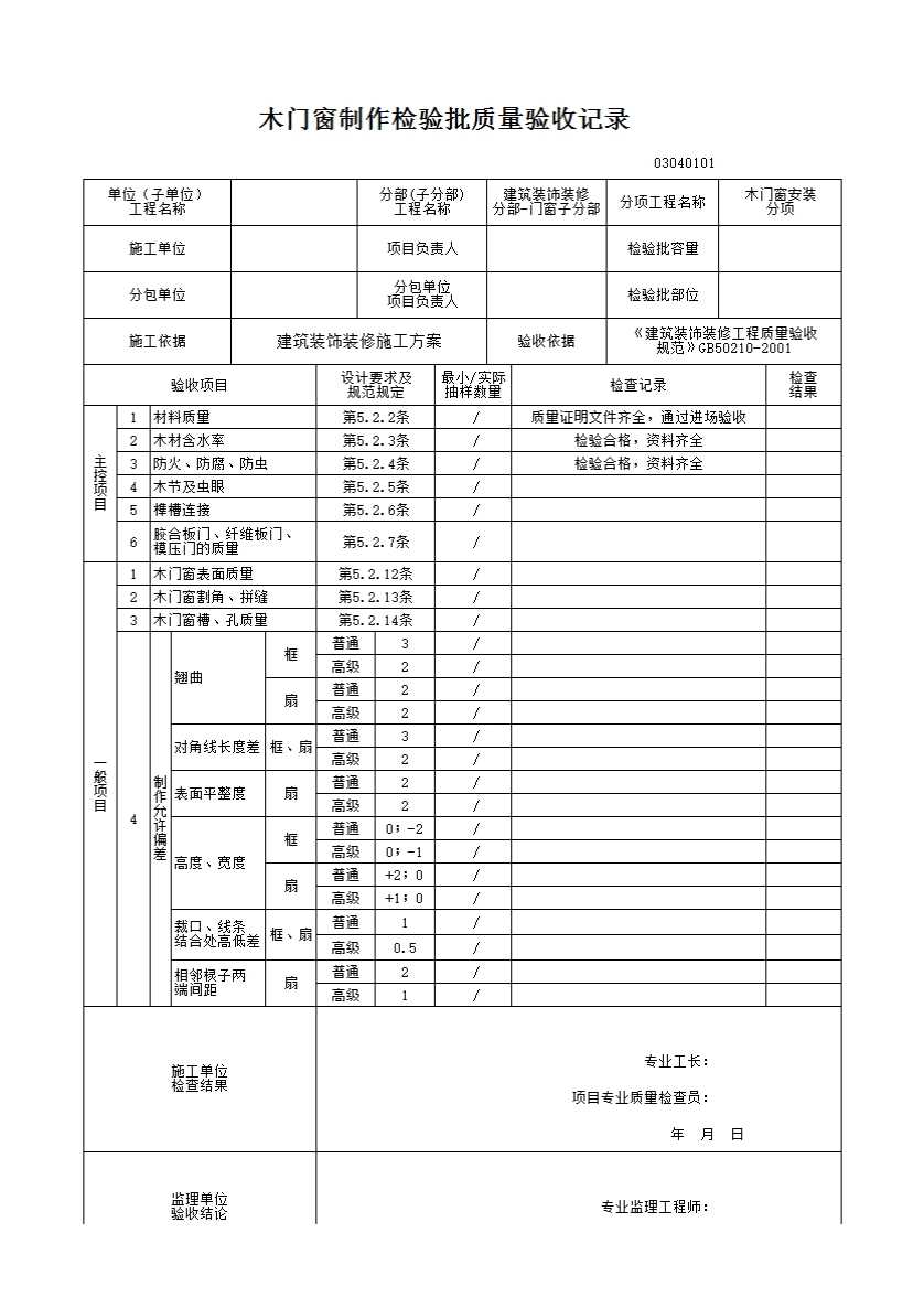 5.2.18     木门窗安装的留缝限值、允许偏差和检验方法