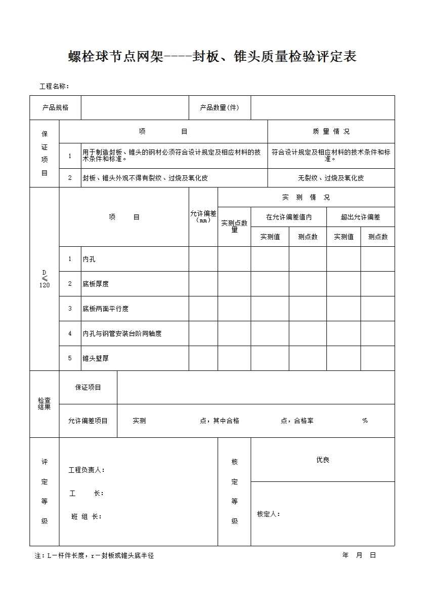 表格名称:螺栓球节点网架----封板、锥头质量检验评定表