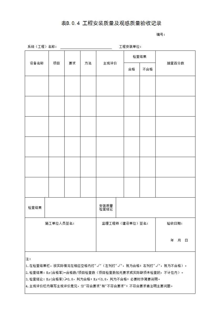 B-0-4_工程安装质量及观感质量验收记录