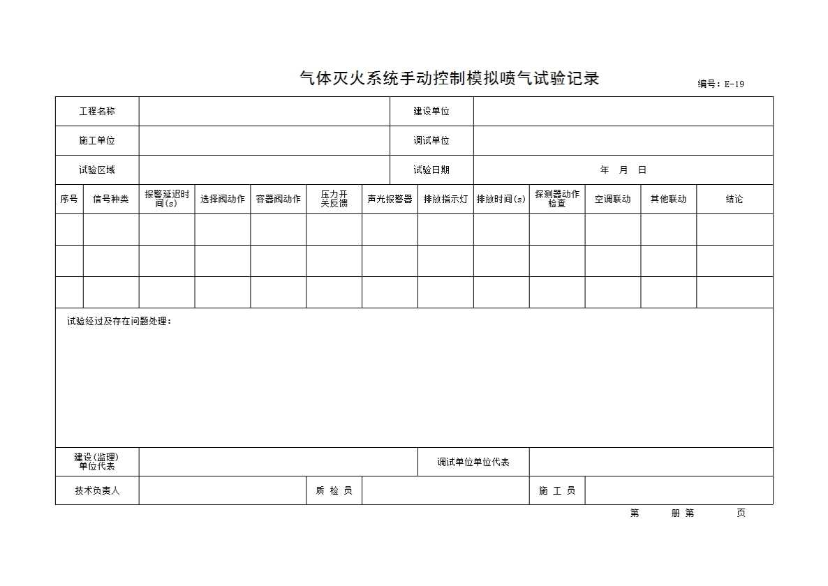 表格名称:气体灭火系统手动控制模拟喷气试验记录