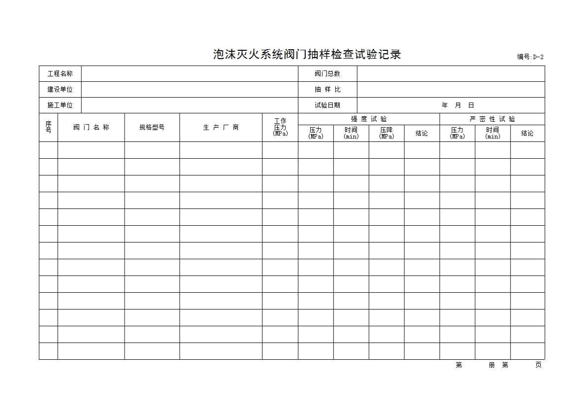 表格名称:泡沫灭火系统阀门抽样检查试验记录