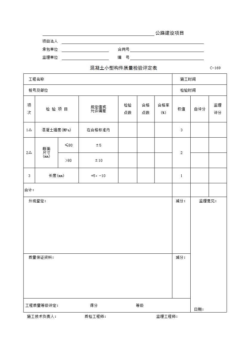 表格名称:C-169 混凝土小型构件质量检验评定表