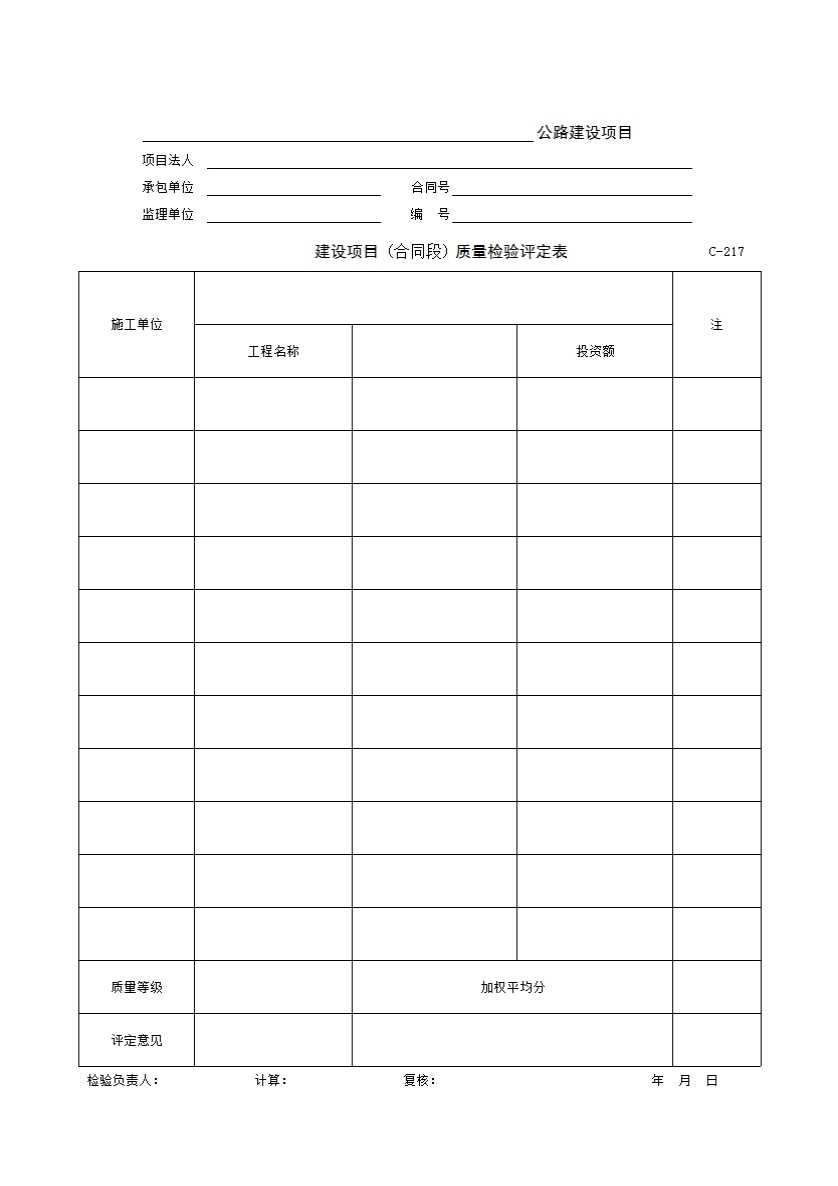 表格名称:C-217 建设项目(合同段)质量检验评定表