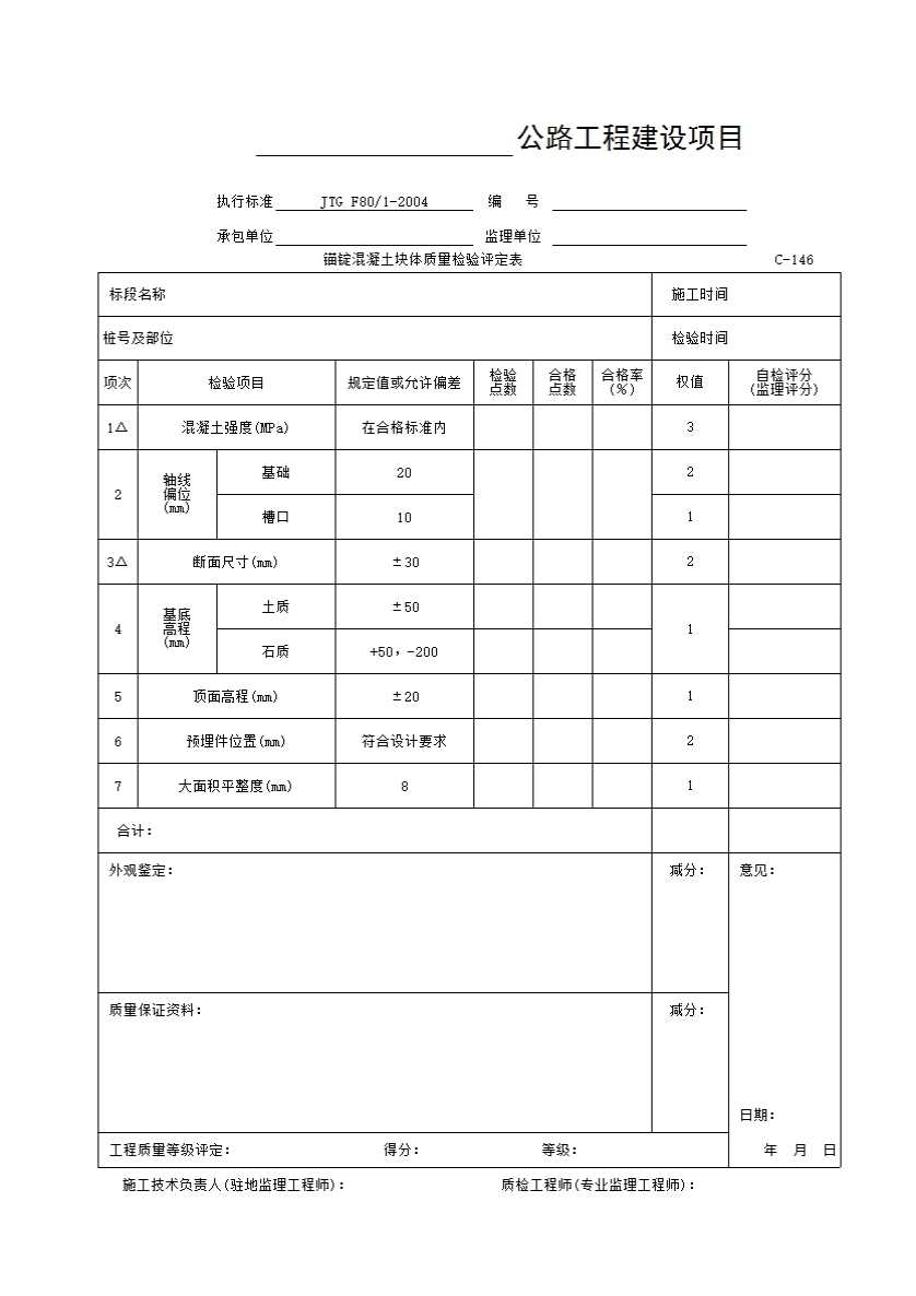 表格名称:C-146表 锚锭混凝土块体质量检验评定表