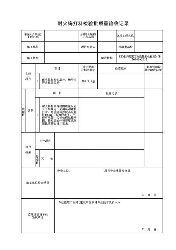 GB 50309-2017 工业炉砌筑工程质里验收标准