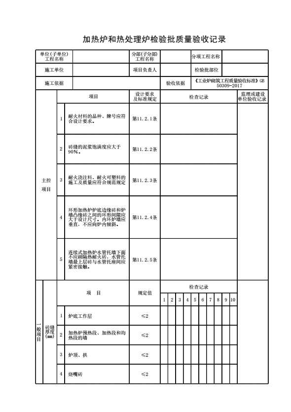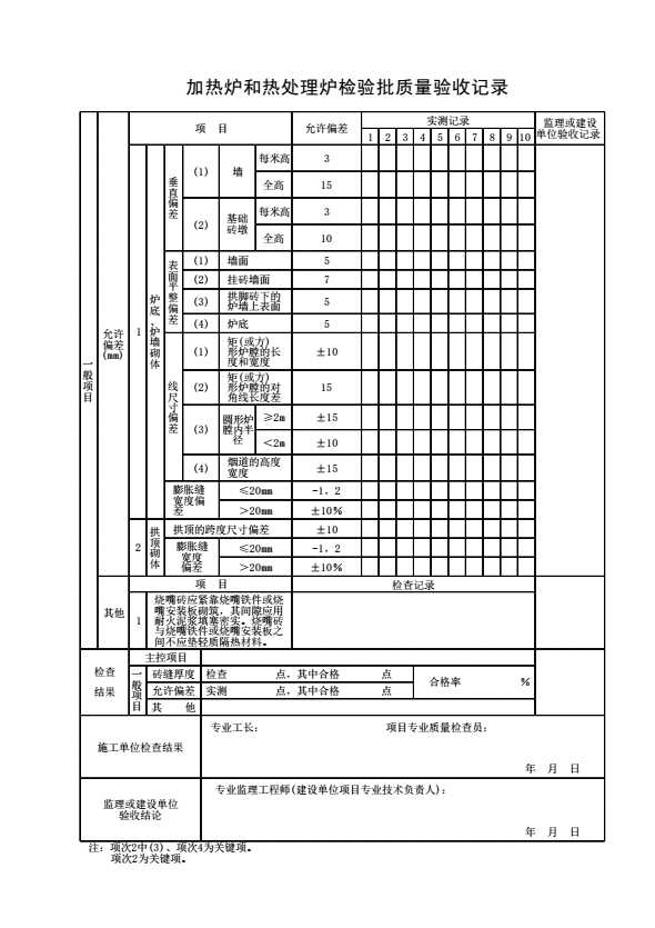 表格名称:加热炉和热处理炉检验批质量验收记录