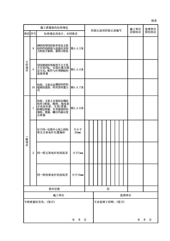 表格名称:G10010102 构架及支架检验批质量验收记录表