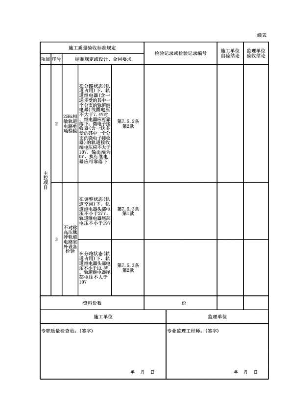 表格名称:G08020404 轨道占用检查装置单项检验检验批质量验收记录表