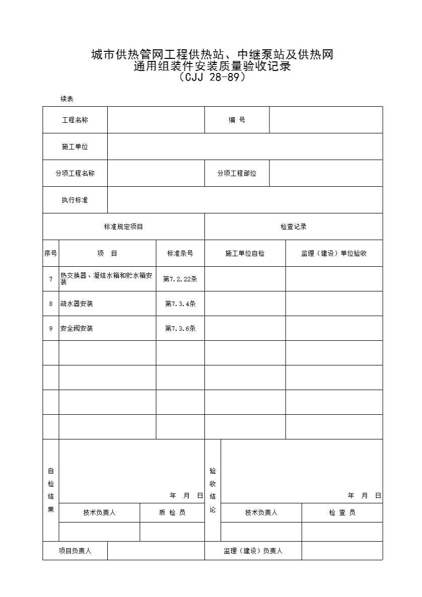 表格名称:4.6 城市供热管网工程供热站、中继泵站及供热网通用组装件安装质量验收记录(续表)