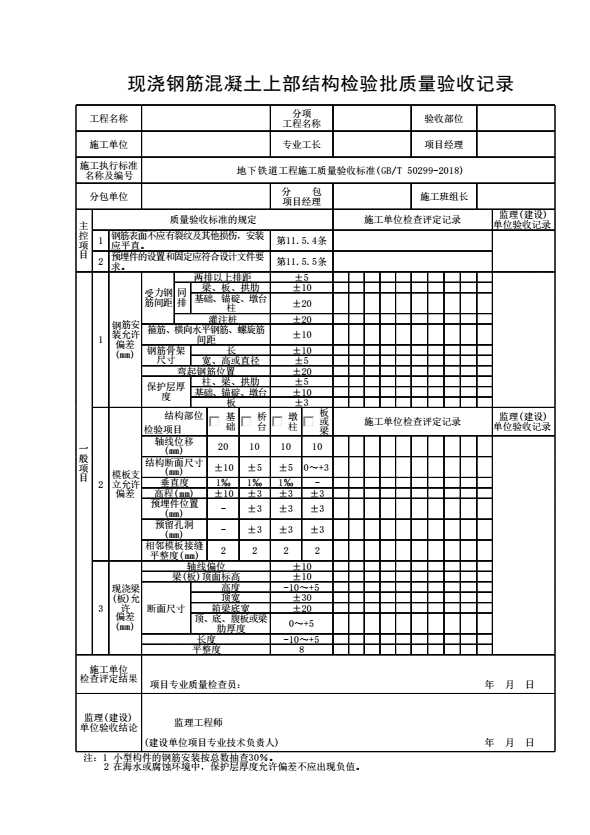 表格名称:现浇钢筋混凝土上部结构检验批质量验收记录