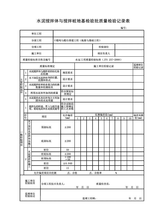 表格名称:水泥搅拌体与搅拌桩地基检验批质量检验记录表