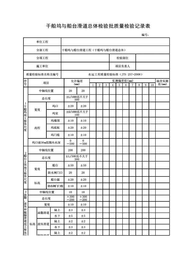 表格名称:干船坞与船台滑道总体检验批质量检验记录表