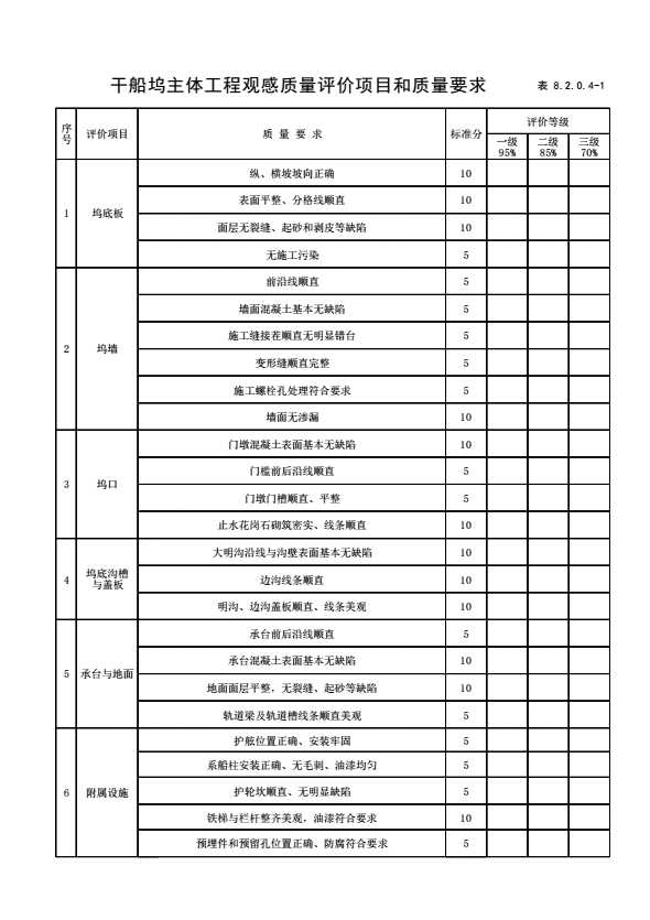 表格名称:干船坞主体工程观感质量评价项目和质量要求