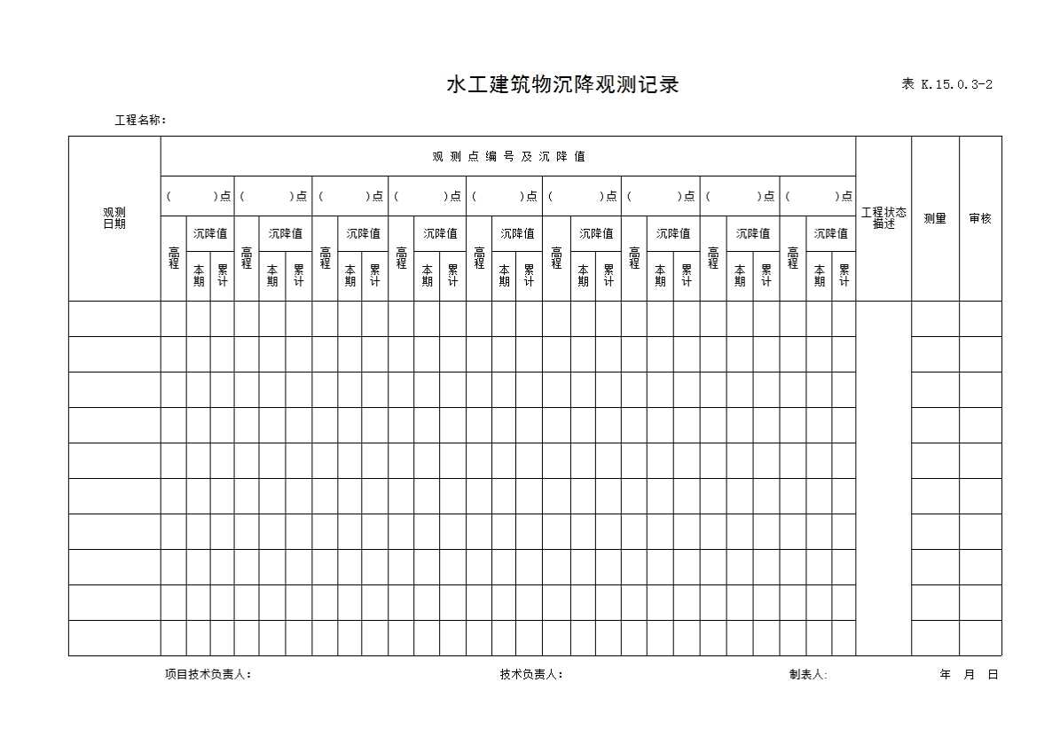 表格名称:表K.15.0.3-2 水工建筑物沉降观测记录