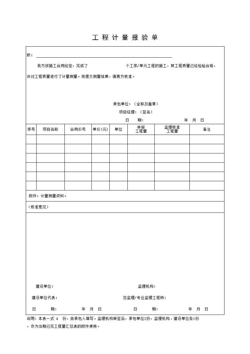 表格名称:工程计量报验单