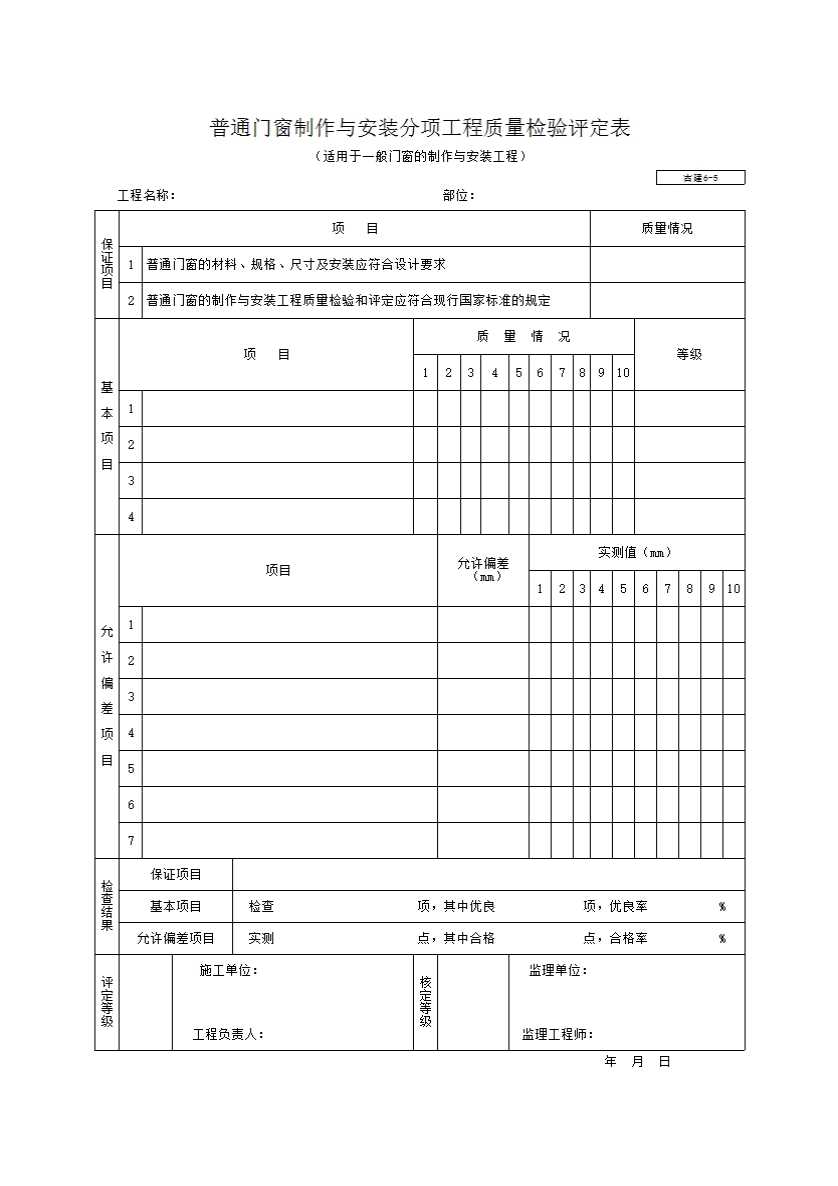 表格名称:普通门窗制作与安装分项工程质量检验评定表
