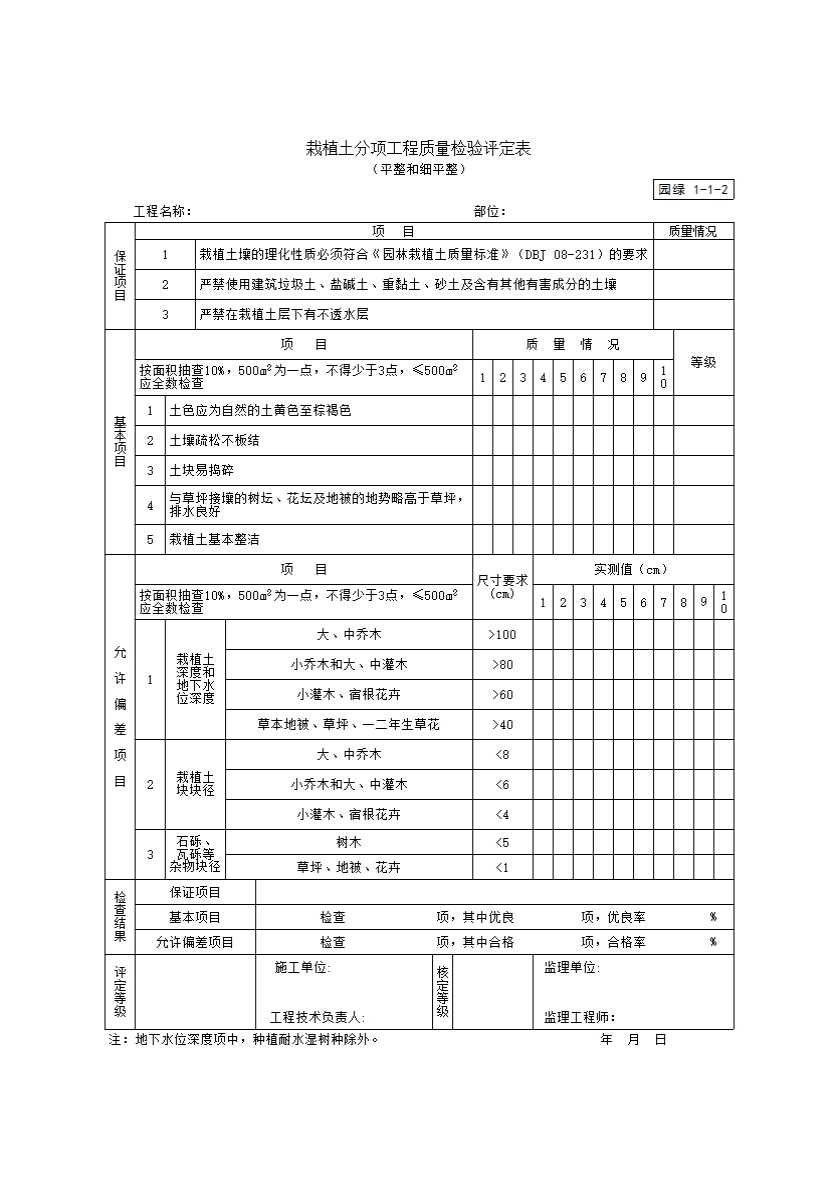 表格名称:栽植土分项工程质量检验评定表