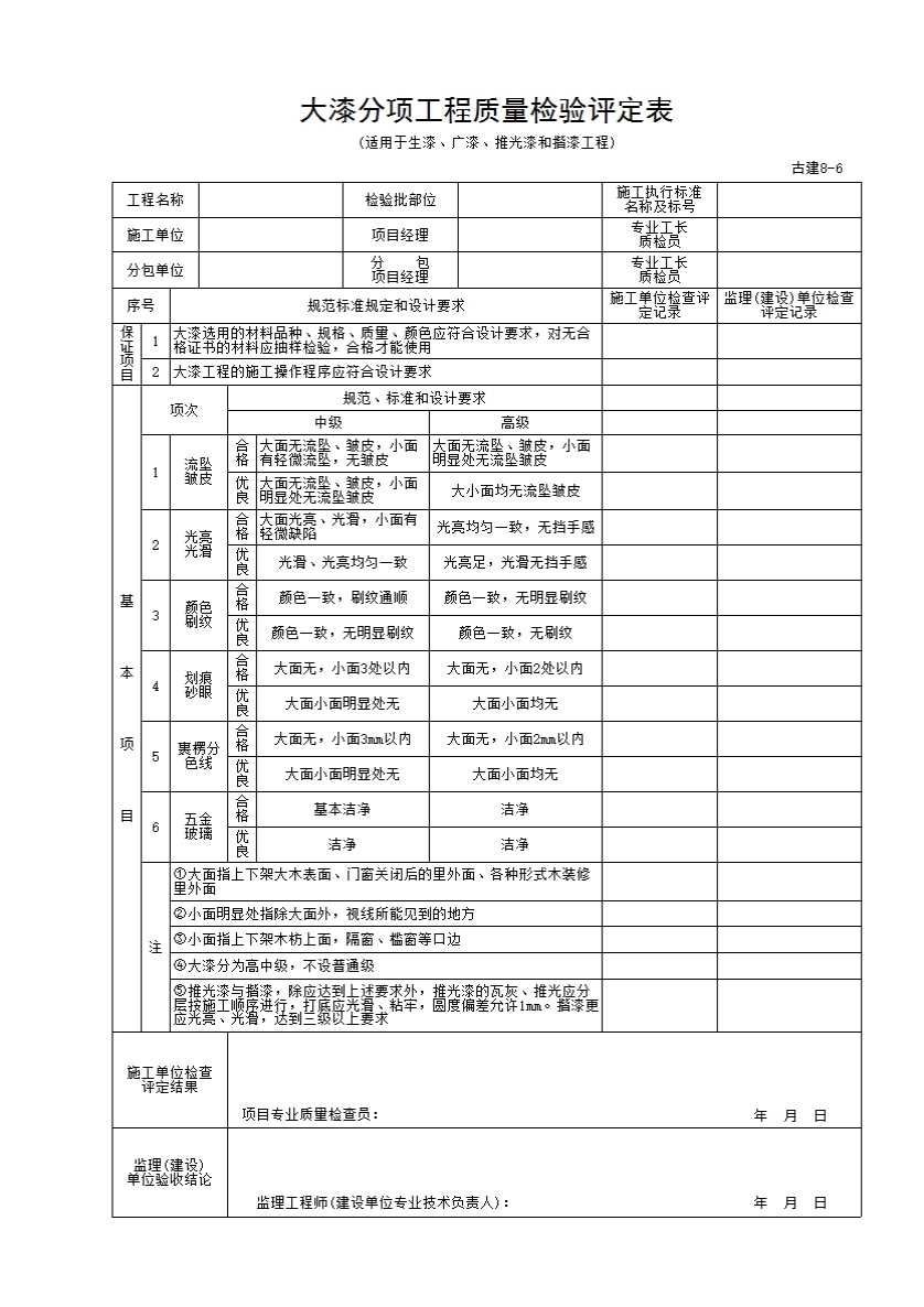 表格名称:古建8-6 大漆分项工程质量检验评定表